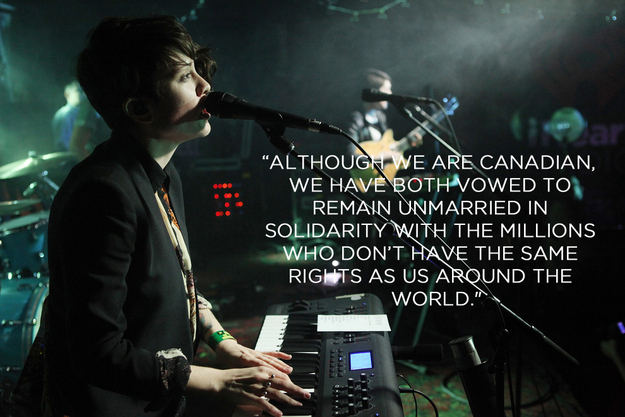 She shouldn’t have to go unmarried. It’s her right at the Canadian level to marry whom she chooses, she doesn’t have to wait on the rest of the world to come out of their dusty closets in order to get married. But she does and so does her sister, they like the picture above states, in solidarity they will remain unmarried.