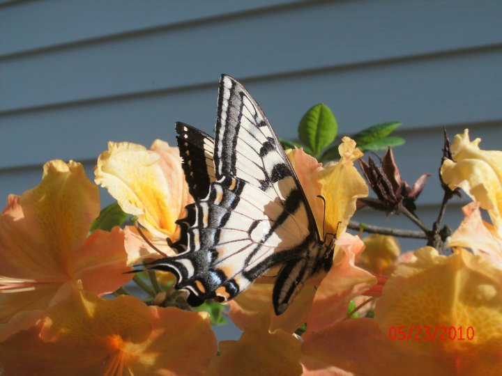 A Yellow Tiger Swallowtail, that takes the place of my Father, Bernard Langworthy, February 7, 1927 to November 12, 1999, seen below among flowers at my Mother’s home in upstate NY, comes to me when I am in random moods.